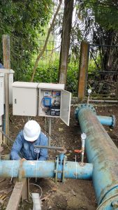 Project Pembuatan Data Logger untuk memonitoring Debit Air, Volume Air, Pressure Air, Alarm untuk Kerja Pompa Air dengan menggunakan Energi Baru Terbarukan untuk sumber Tegangannya.
